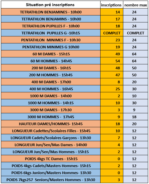 Voici la LISTE DES INSCRITS au 7 février 2026 à 22h00