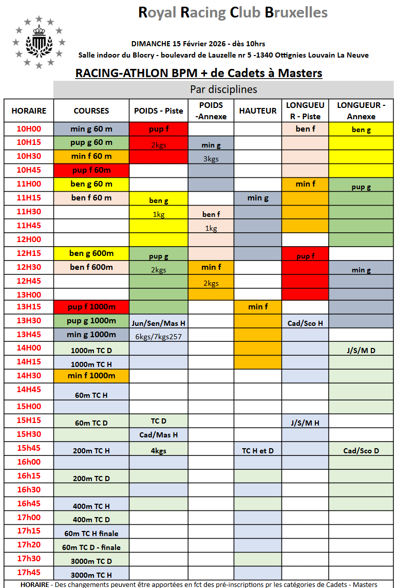- À partir du 02/02/2026 : athlètes des autres clubs